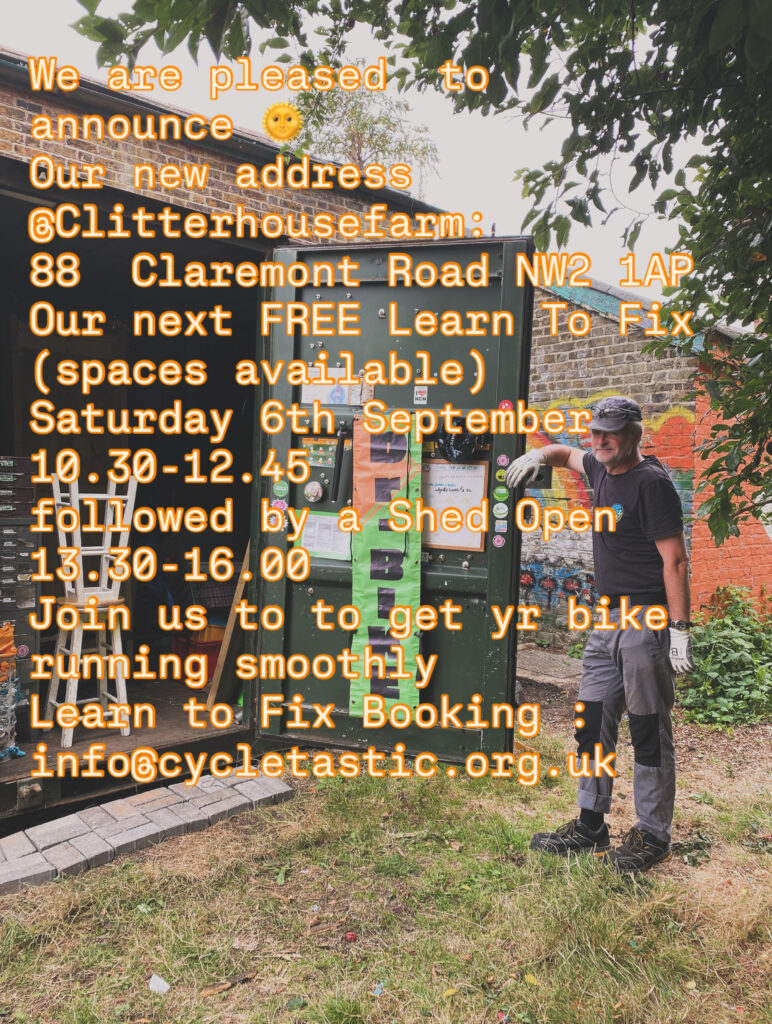 The shed opens onĀ first and last Saturday afternoonsĀ during the warmer months so that you can drop in and repair your own bike using our tools and parts. Please check Instagram :cycletasticfixlearnride for updates. Cycletastic can help you learn basic bike mechanics so that you can save money and become aĀ self sufficient bike owner. We have a tool and parts resourceĀ and welcome anyone to the shed onĀ Saturday afternoons that needs bike help.Ā
